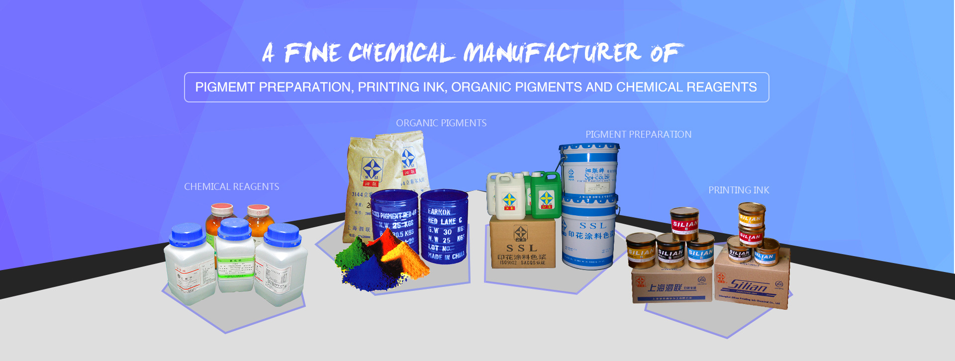 A fine chemical manufacturer of Pigment Preparation , Pinting Ink , Organic Pigments and Chemical Reagents